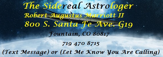The Sidereal Astrologer charges for the time of services to be scheduled, and will be found on your invoice from Robert Augustus Marriott II. Additionally does not mind any donation being for any of the free information provided.